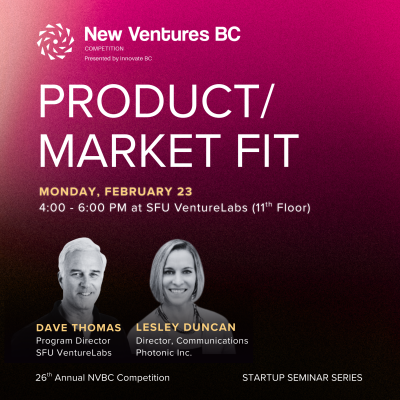 Join us for Product/Market Fit with Dave Thomas and Lesley Duncan as they take you through an interactive seminar focused on getting your business ready for market.