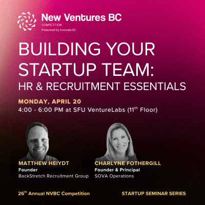 Throughout the Spring, New Ventures BC will host a series of events designed to give you the insights, tools, and resources you need to build and grow your business and set yourself up for success in the 2026 NVBC Competition.